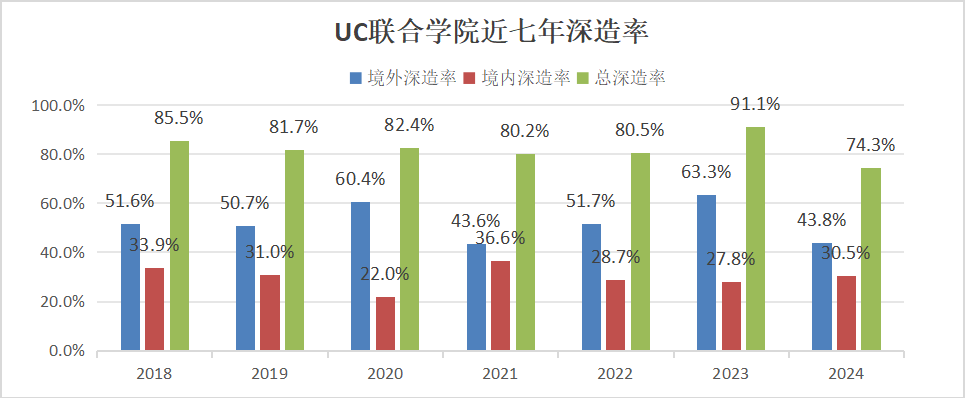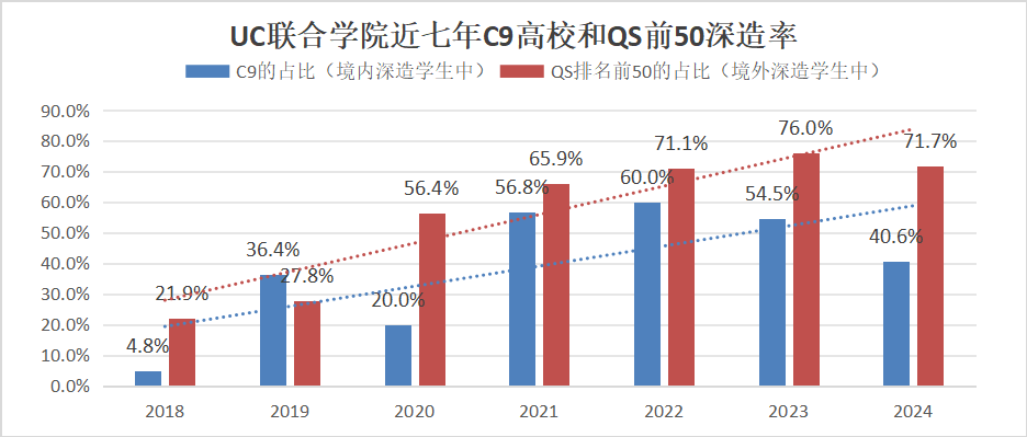 圖4 辛辛那提學(xué)院近七年C9高校和QS前50深造率