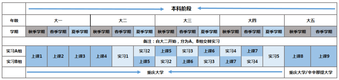 從入學(xué)起,注冊(cè)為兩校學(xué)生,享受雙方教學(xué)資源。合格畢業(yè)生獲得美國(guó)辛辛那提大學(xué)和重慶大學(xué)學(xué)士學(xué)位。中(畢業(yè)證、學(xué)位證)美(學(xué)位證)證書(shū)與同專(zhuān)業(yè)普通學(xué)生一致(五年制)。